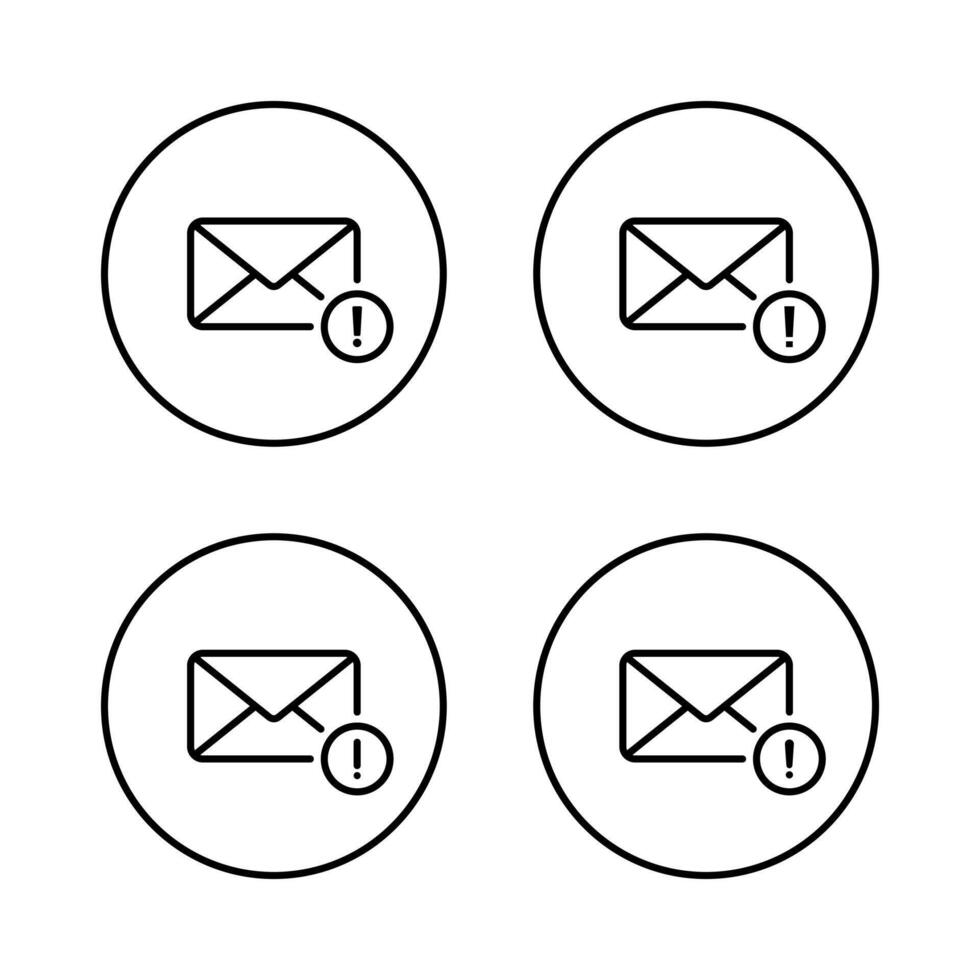 Email alert icon set. Envelope message warning symbol with exclamation mark. Error mail notification sign in circular outline Pro Vector