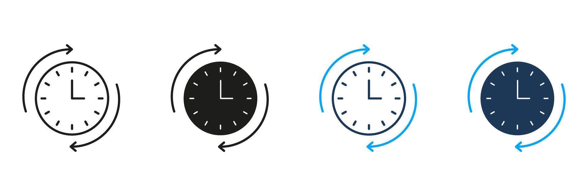 Clock With Arrows Line And Solid Icon Set. Time Management, Scheduling, And Workflow Optimization Symbol Collection. Efficient Planning And Productivity. Isolated Illustration Pro Vector