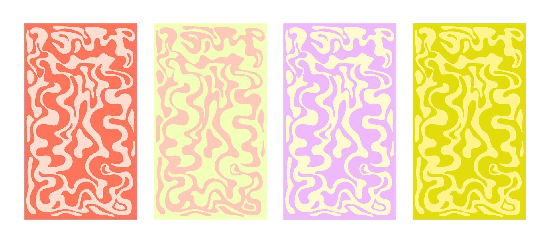 Abstract wavy backgrounds in different colour palette Set of psychedelic vertical backgrounds. Textures with smooth waves, curves and lines Pro Vector