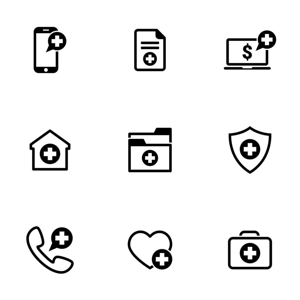 Set of simple icons on a theme Medical service, vector, design, collection, flat, sign, symbol,element, object, illustration, isolated. White background Pro Vector