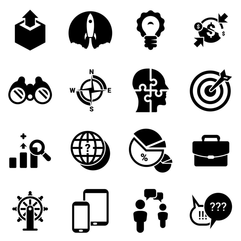 Set of simple icons on a theme start up, Project, business, vector, design, flat, sign, symbol, object, illustration. Black icons isolated against white background Pro Vector