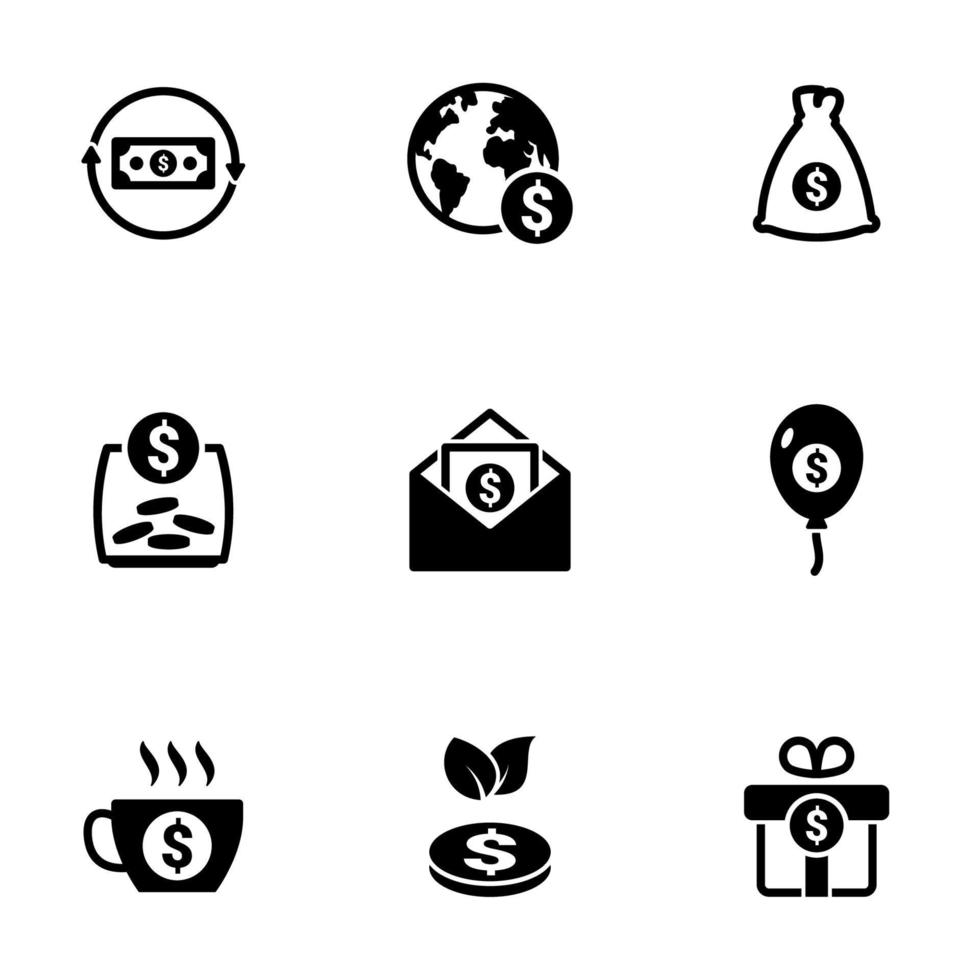 Set of simple icons on a theme Cash consideration, vector, design, collection, flat, sign, symbol,element, object, illustration, isolated. White background Pro Vector