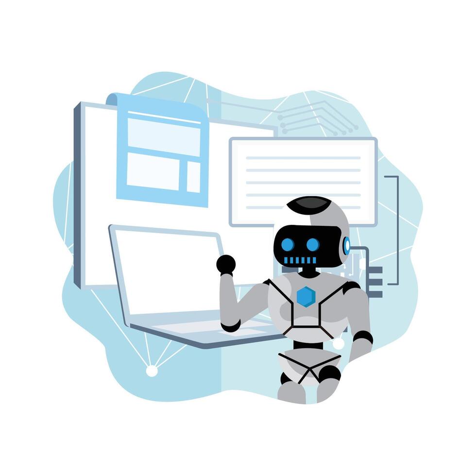 Exploring Technology with a Friendly Robot Assistant Pro Vector