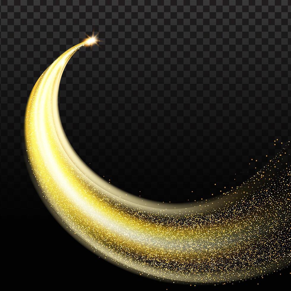 Golden wave whith trail of comet and sparkling gold stardust, effect bokeh. Luminescent wave with bright bokeh and sparkles trail Pro Vector