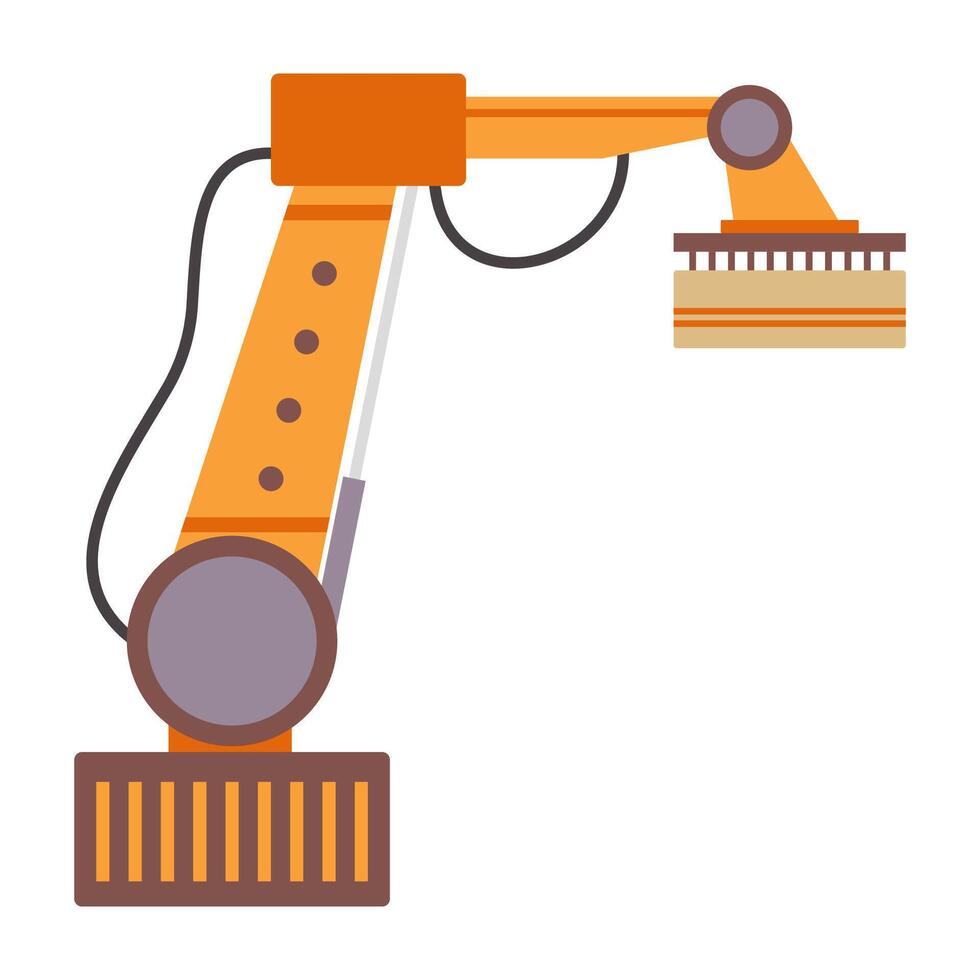Two robotic arms working in sync with precision. Industrial automation in a clean, minimalistic flat design. Pro Vector