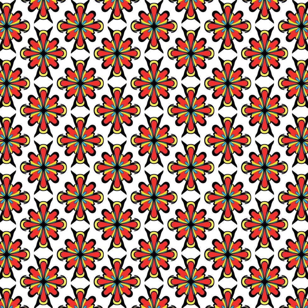 Geometric Floral Pattern with Retro Ethnic Motif in Pink and Blue for Fabric and Textile Design, Traditional Flower Pattern with Hand Drawn Botanical Elements Pro Vector