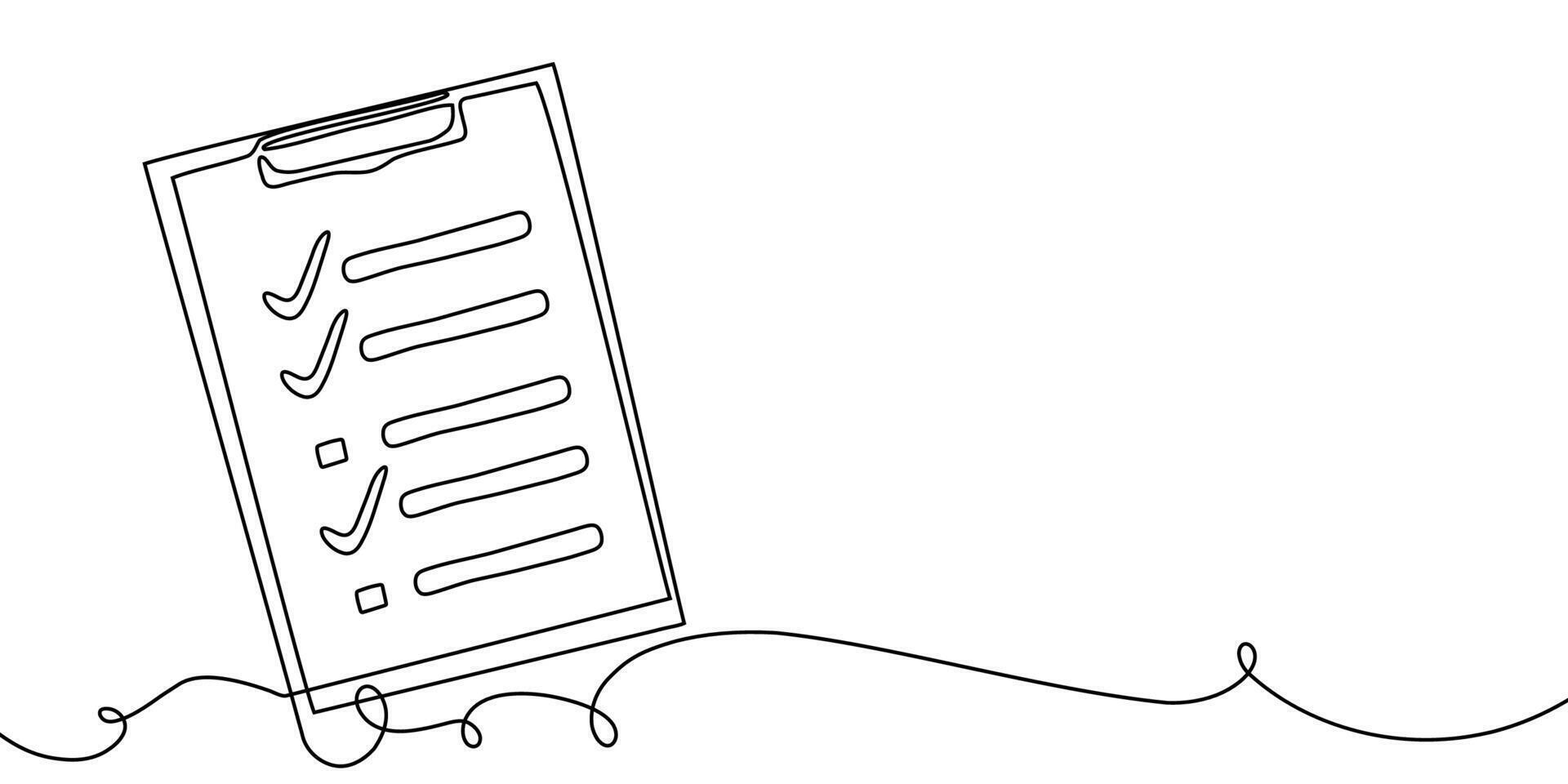 Line art one icon continuous document list illustration single check clipboard. Art one line data checklist survey test pen paper business report doodle notebook agenda sketch board form. Pro Vector