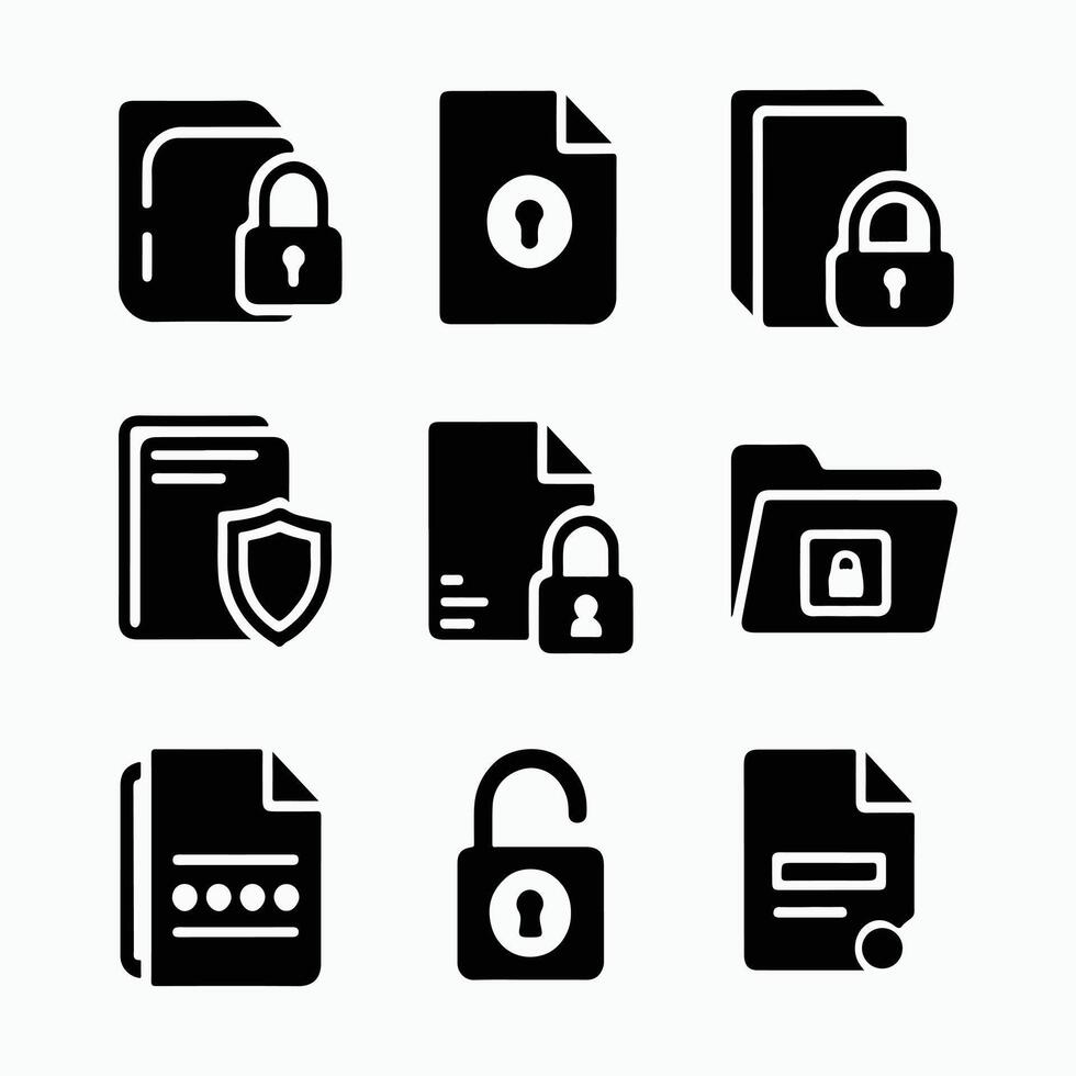 Set of Secure Folder and Document Icons for Data Protection Pro Vector
