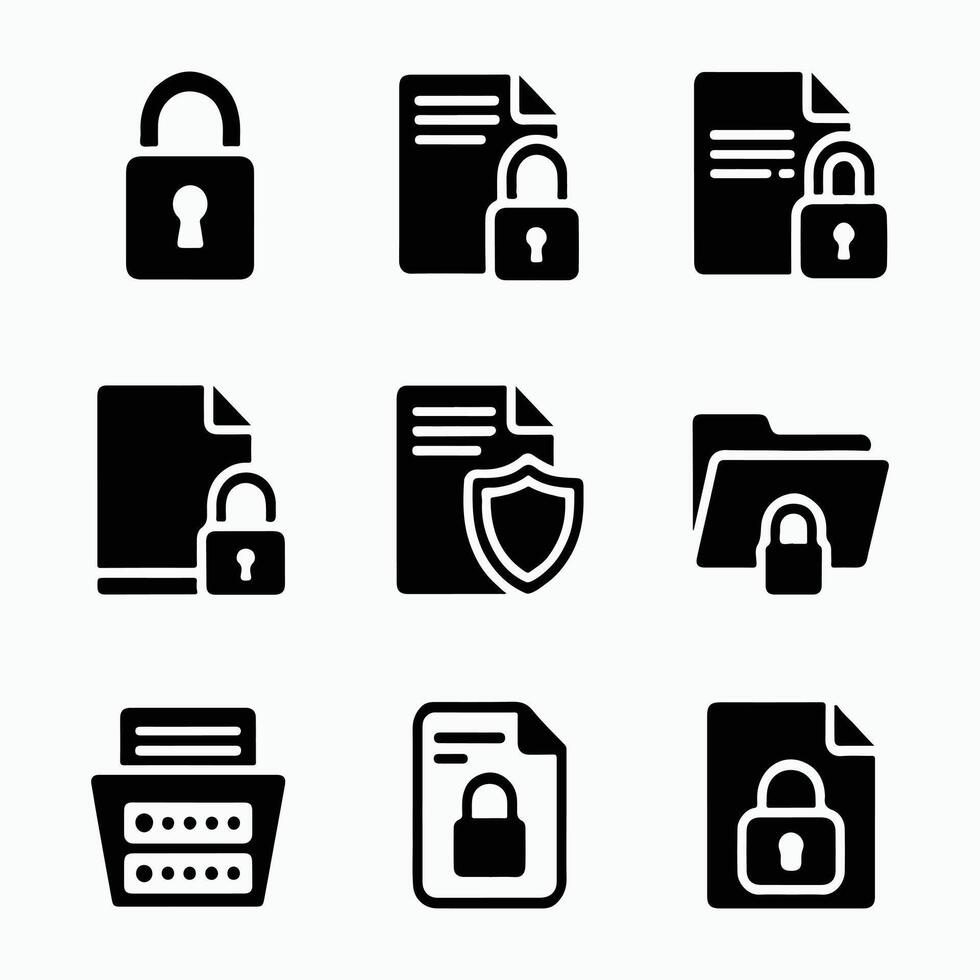 Flat Lock Icons on Files and Folders for Security and Privacy Pro Vector