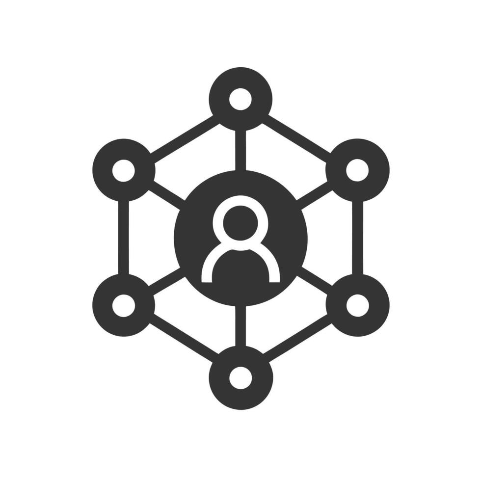 Network connection icon with user profile in center, symbolizing social media, communication, teamwork, digital community, technology, and online networking on white background. Pro Vector