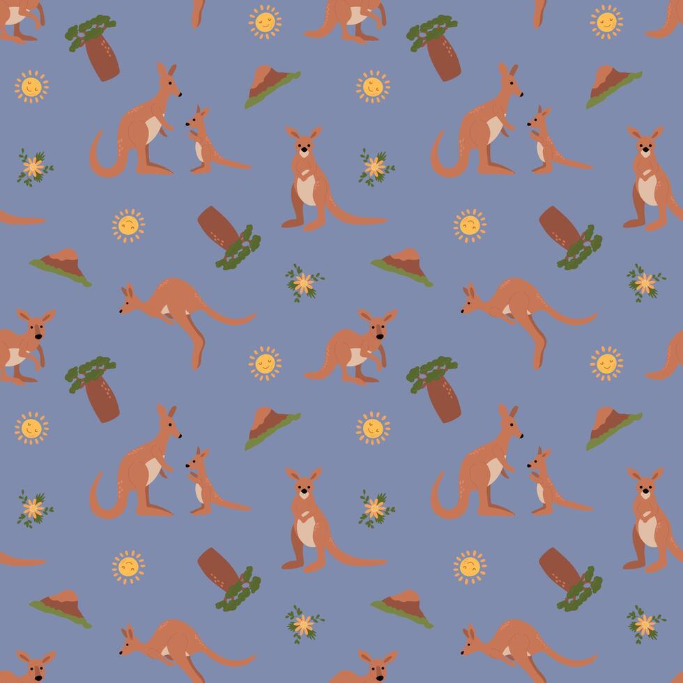 Kangaroo and Joey Seamless Pattern Illustration. Design for fabric Pro Vector