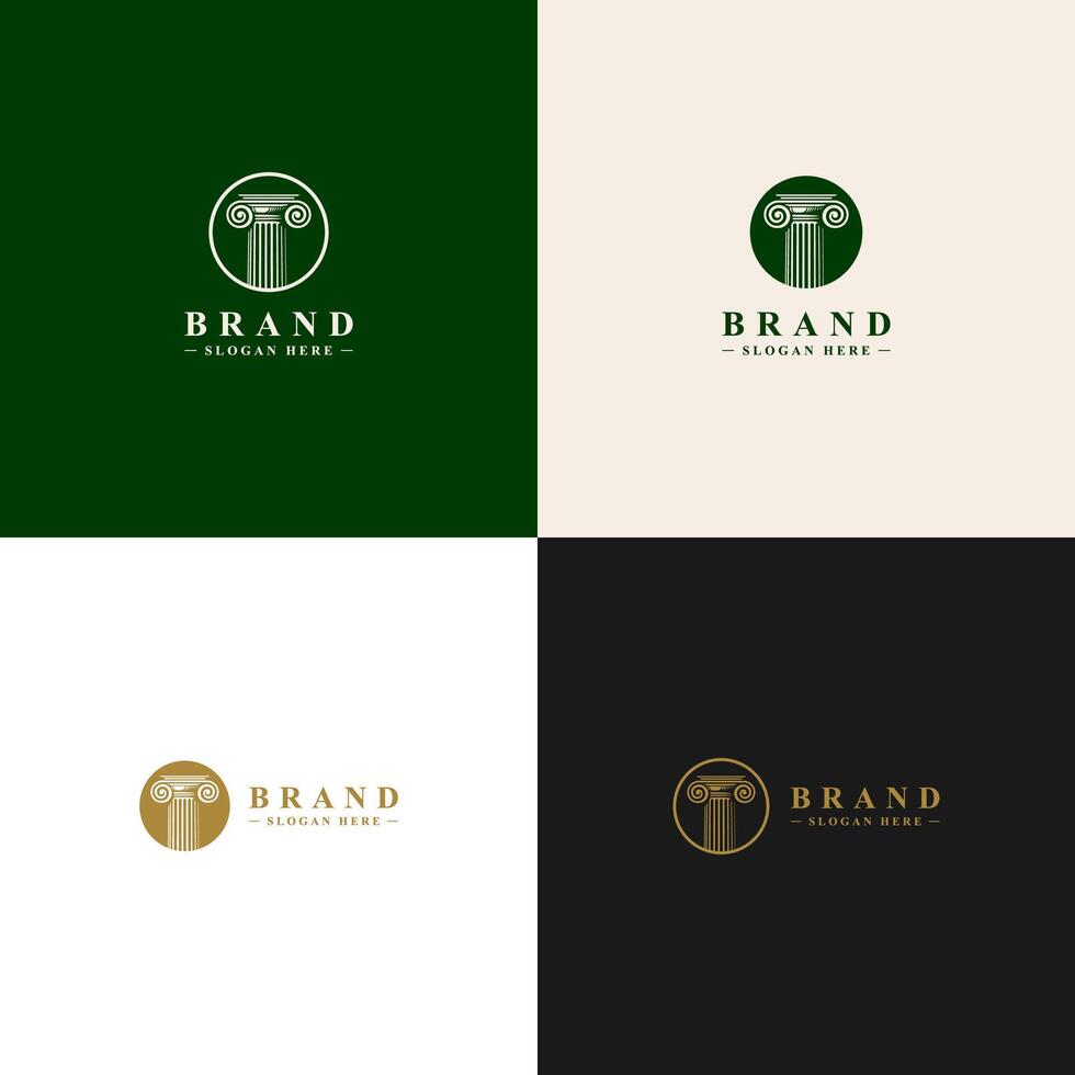 A simple logo with an Ionic column as the central element, styled in elegant green tones Pro Vector