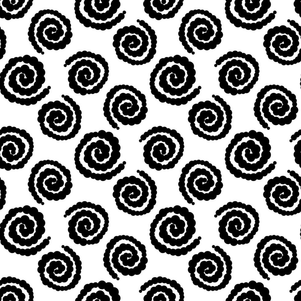 Abstract pattern of spirals, a line with dots of different thickness. A brush for creating lines with dots. Monochrome. A drawing with hand-drawn effects. A seamless texture of circles and dots Pro Vector