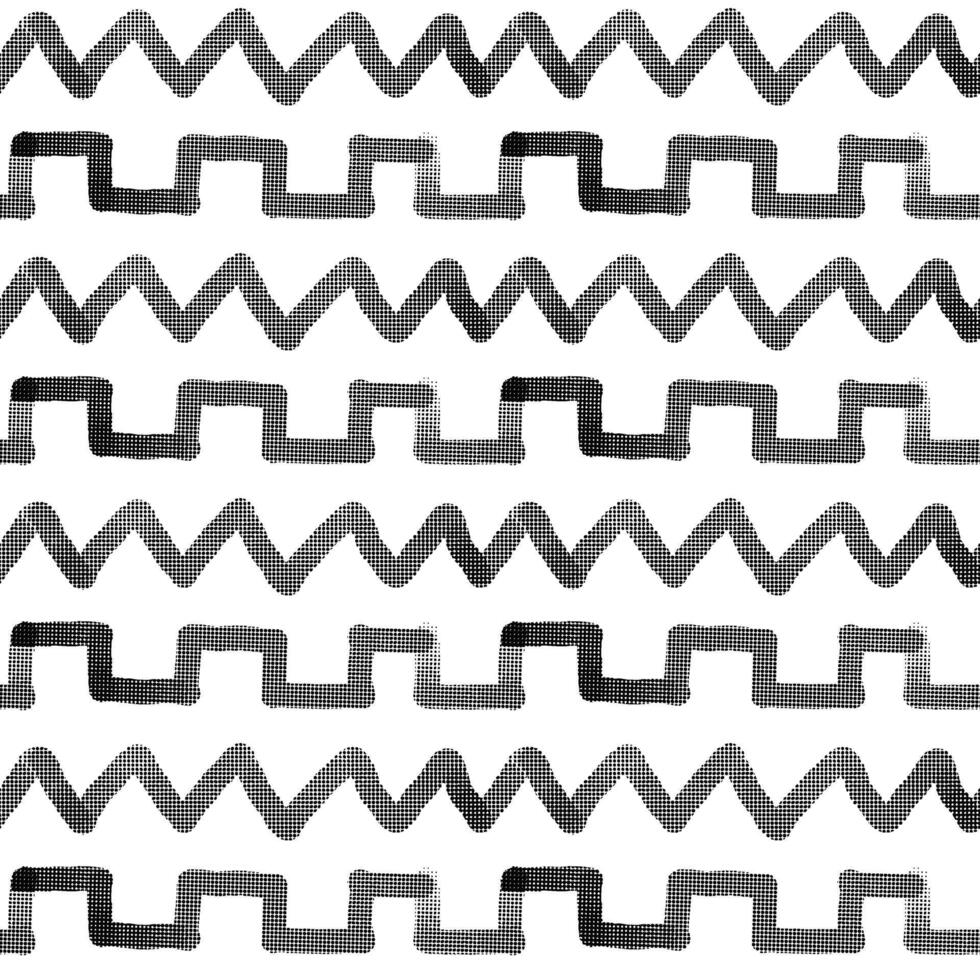 Geometric shapes in a pattern with abstract striped strokes. Stripes in the shape of geometric lines, zigzags, and triangles. Seamless texture, hand-drawn shading Pro Vector