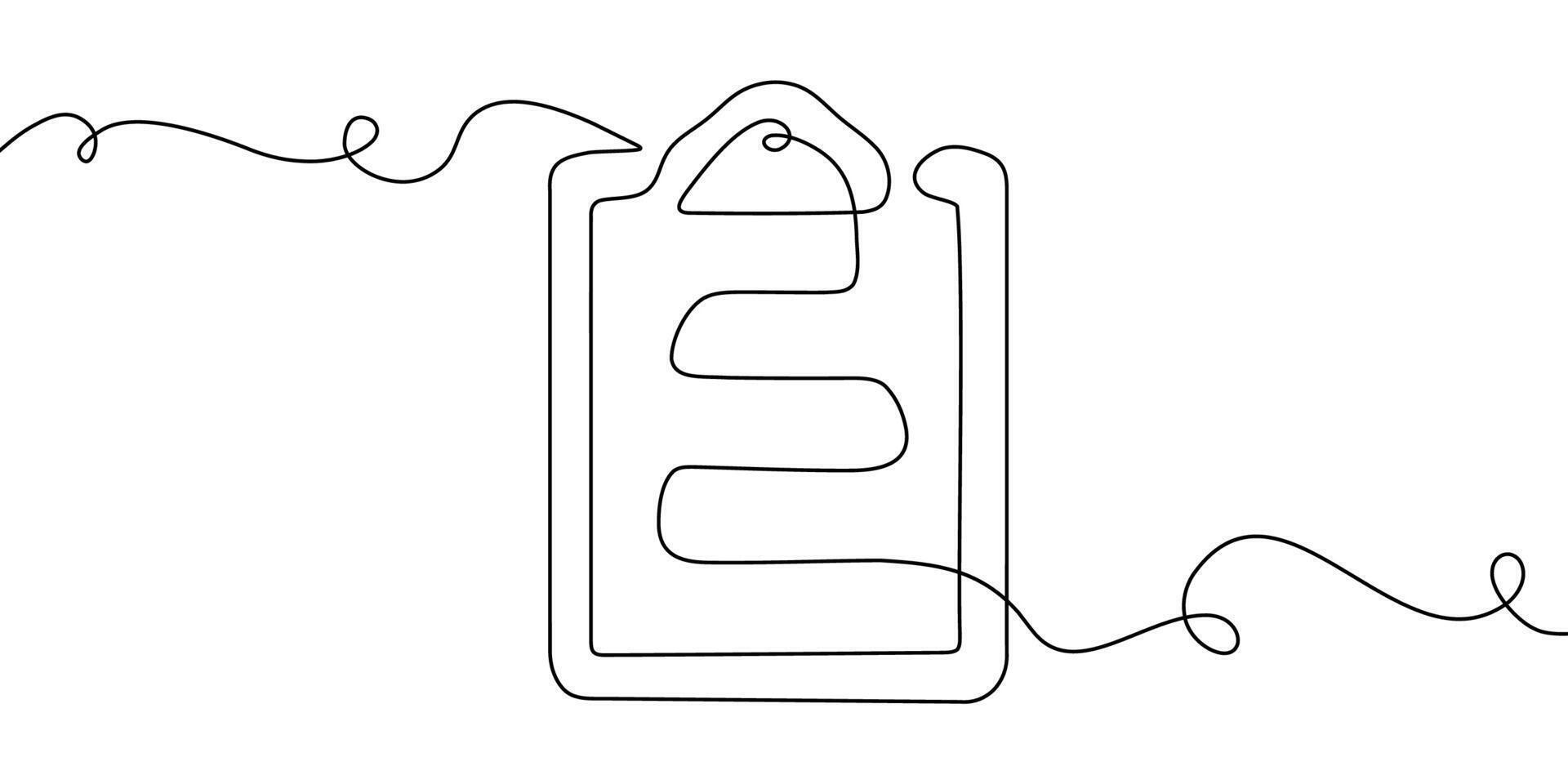 One art line icon document continuous list illustration single check clipboard. Line one art survey checklist data test pen paper business report doodle notebook agenda sketch board form. Pro Vector