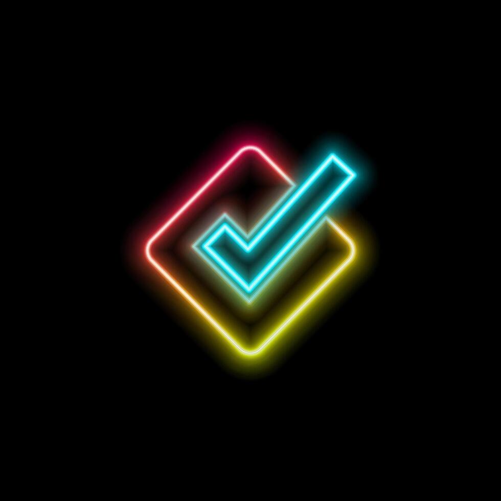 .neon style. icon Check mark Correct square sign Checked outline symbol Right choice Vote Select selection Yes Statement Confirm Pro Vector