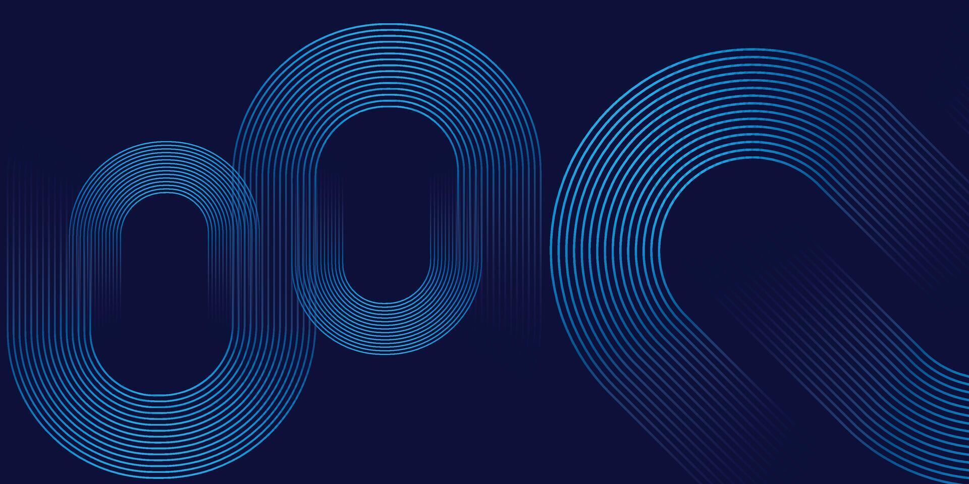 Dark Futuristic Abstract Background with Blue Rounded Line Arches and Tech Flow Design Pro Vector