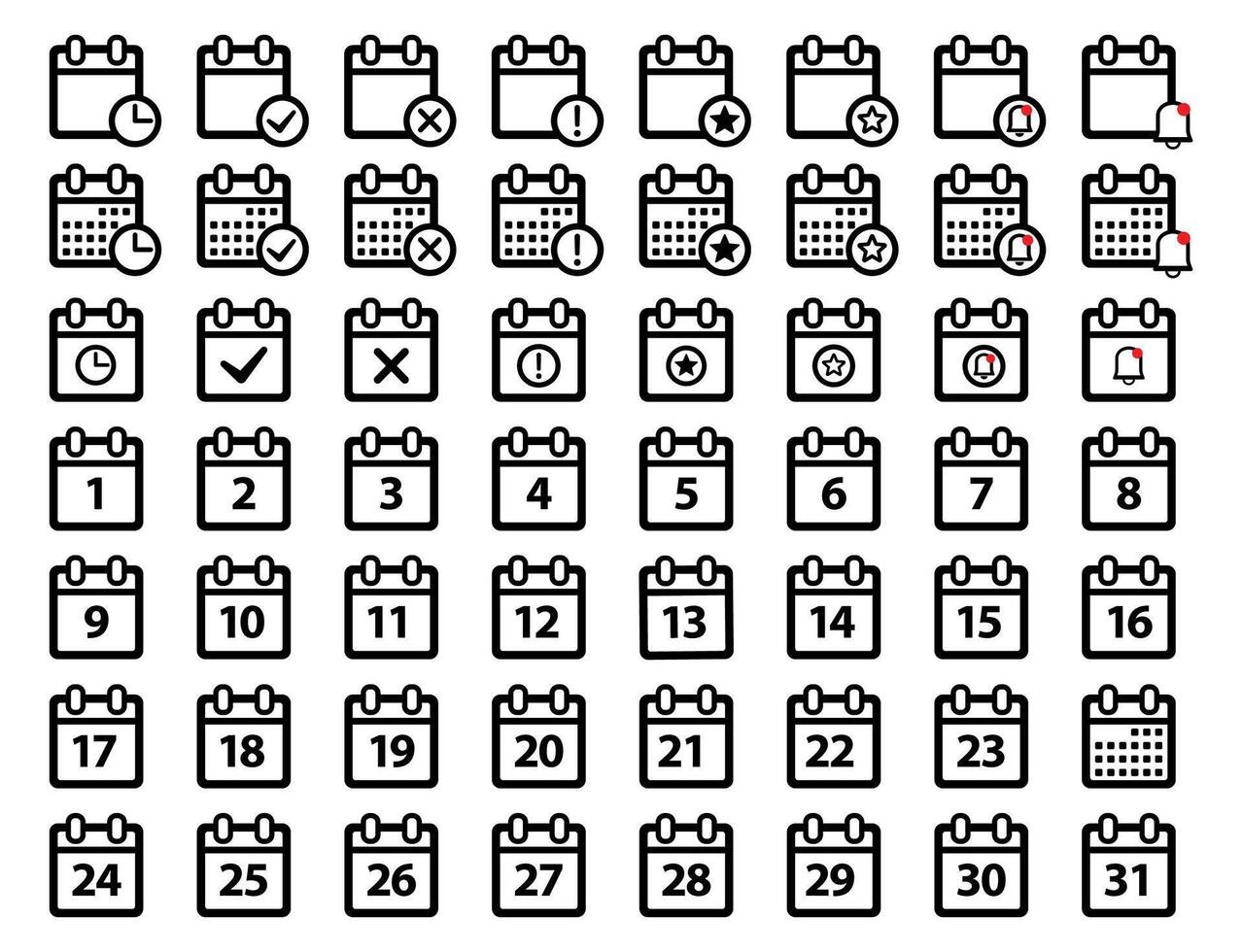 Calendar Icons Set - Date, Reminder, Events and Notifications. Minimal and Functional UI Style Pro Vector