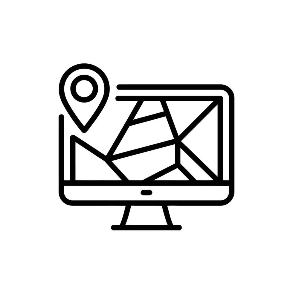 Computer screen displaying a map with a location pin icon vector