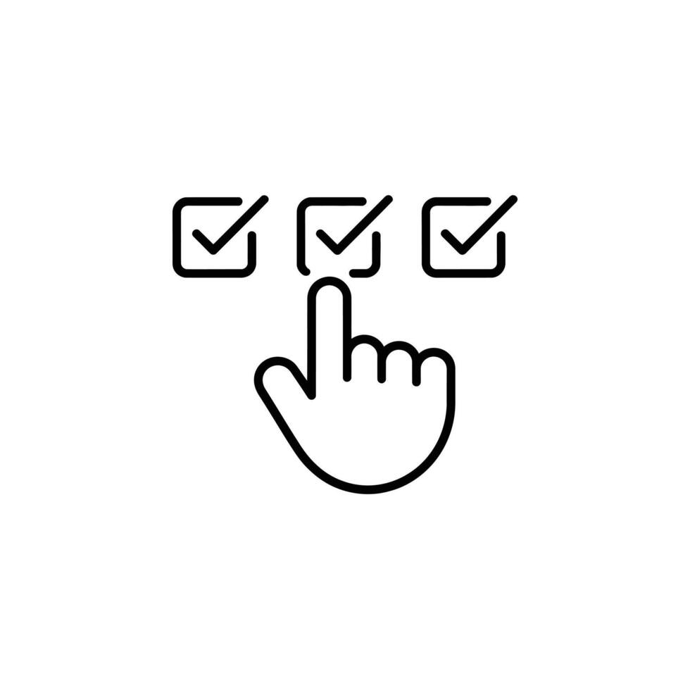 Hand Pointing to Check Marks in Boxes Concept of Selection Choices and Decisions vector