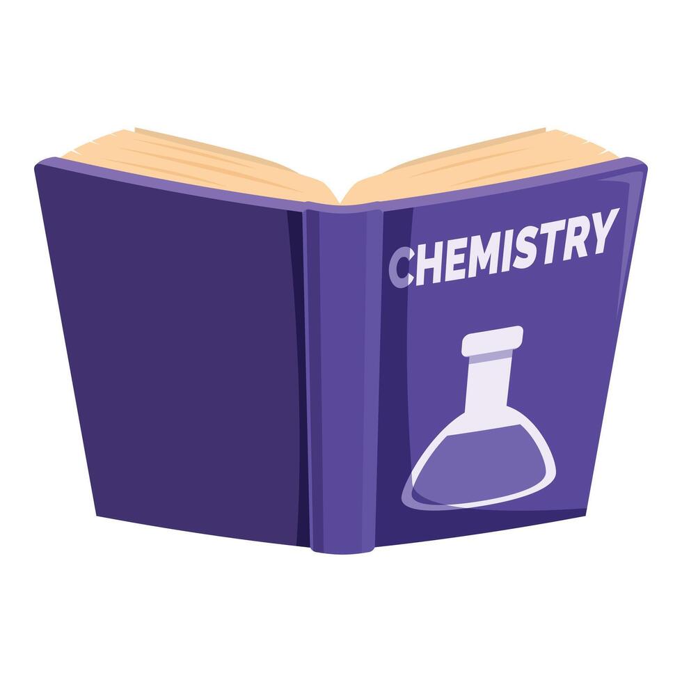 Open chemistry textbook showing empty pages and flask icon Pro Vector