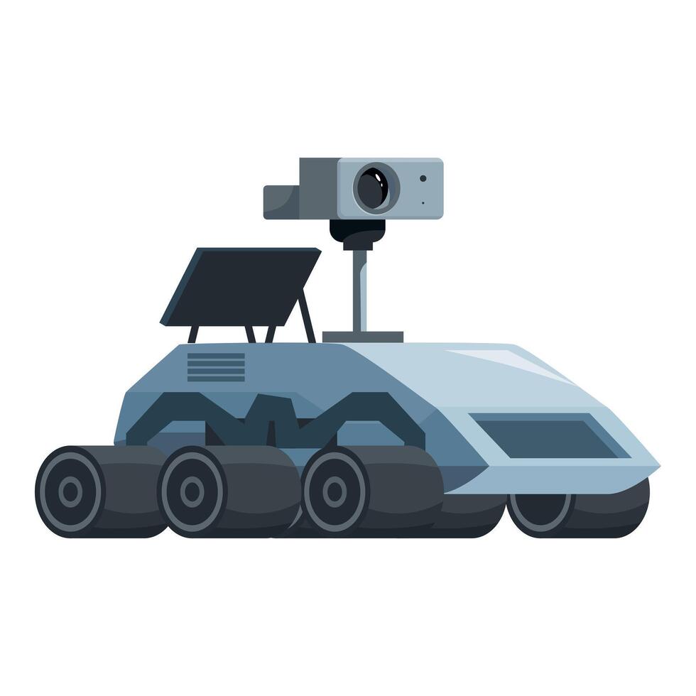 Autonomous rover exploring extraterrestrial planet surface with camera and solar panel Pro Vector