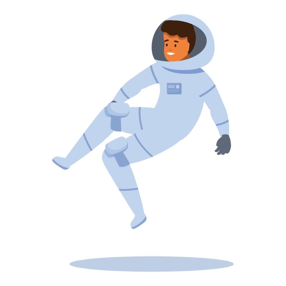 Smiling astronaut floating in space wearing spacesuit Pro Vector