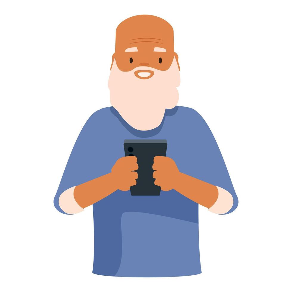 Smiling senior man using smartphone, embracing modern technology Pro Vector