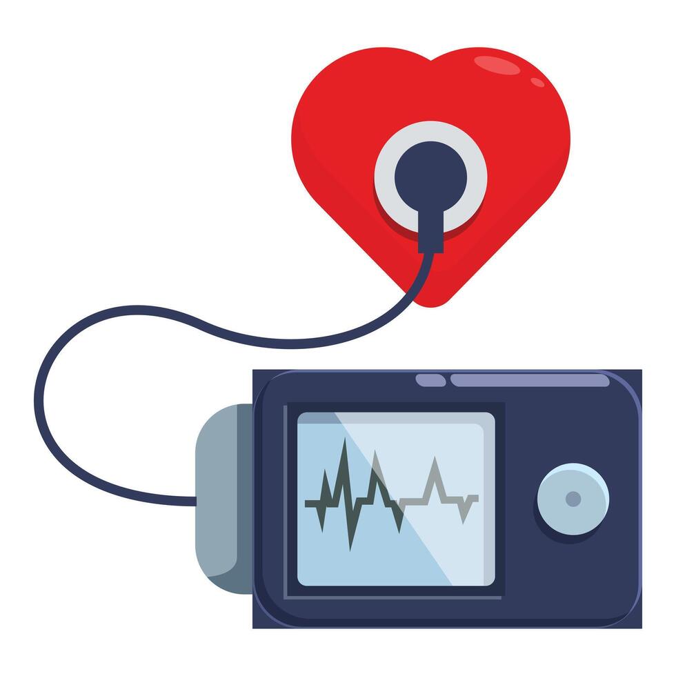 Heart rate monitor showing pulse on screen connected to red heart symbol Pro Vector