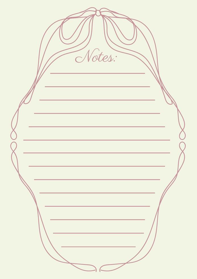 Notes Sheet In Elegant Whimsical Retro Coquette Outlined Hand Drawn Doodle Oval Ribbon Frame With Bow Design Pro Vector