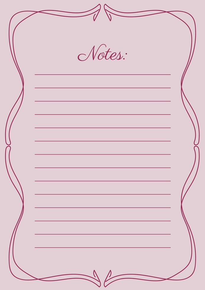 Notes Sheet In Whimsical Retro Coquette Outlined Hand Drawn Doodle Frame Design Pro Vector