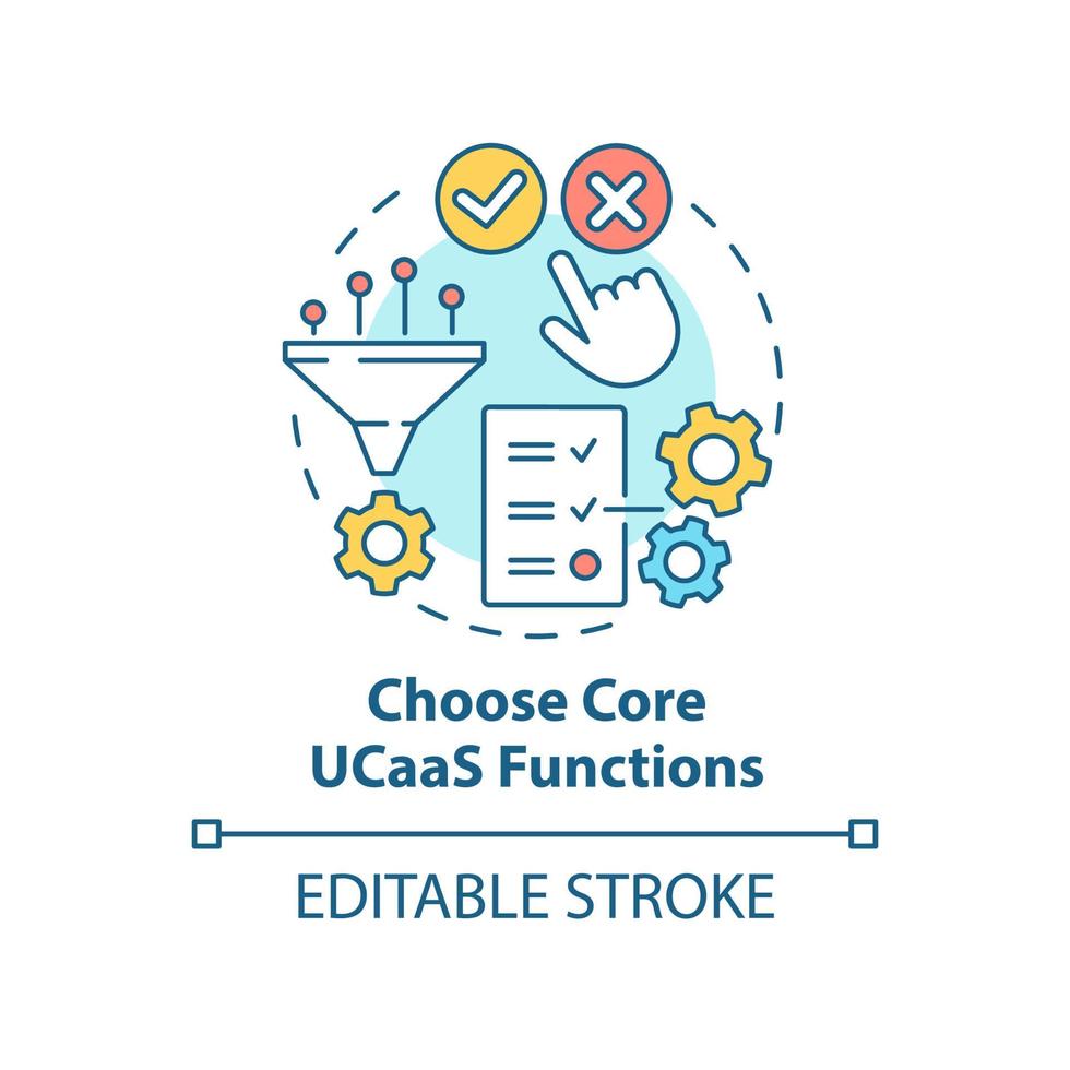 Choose core UCaaS functions concept icon. Communication system providing abstract idea thin line illustration. Isolated outline drawing. Editable stroke. Arial, Myriad Pro-Bold fonts used Pro Vector