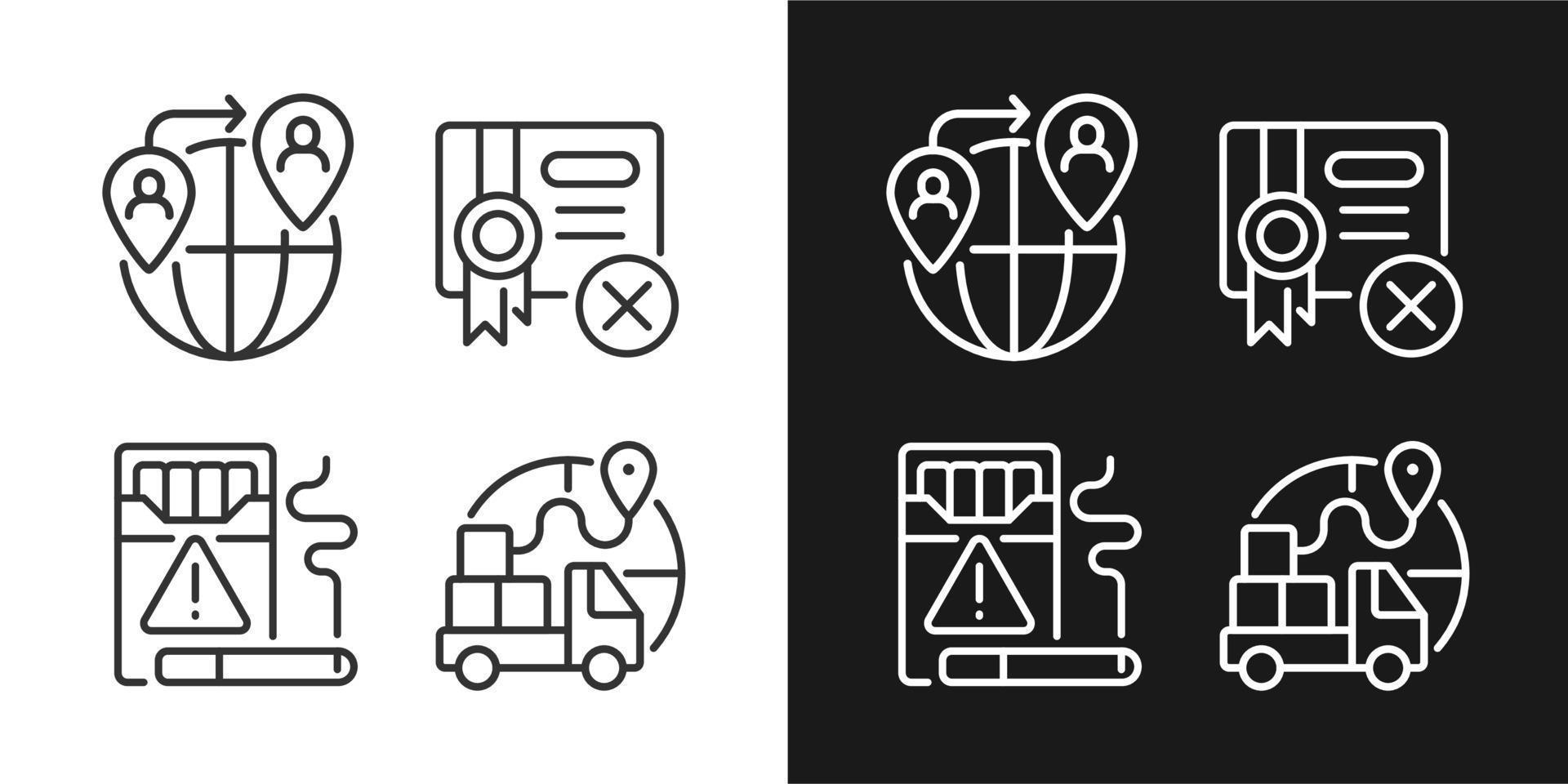 Contraband linear icons set for dark and light mode. People smuggling. Cigarettes trading. Customizable thin line symbols. Isolated vector outline illustrations. Editable stroke. Pixel perfect Pro Vector