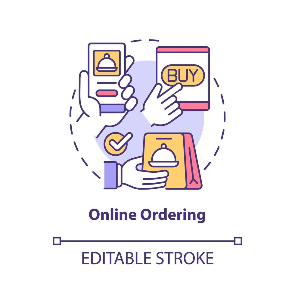 Online ordering concept icon. Wireless solution. Touchless system abstract idea thin line illustration. Isolated outline drawing. Editable stroke. Roboto-Medium, Myriad Pro-Bold fonts used Pro Vector