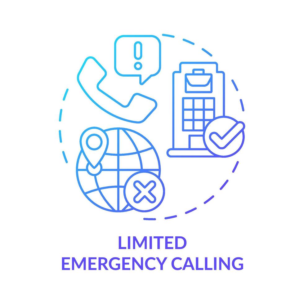 Limited emergency calling blue gradient concept icon. Actual location data. UCaaS problems abstract idea thin line illustration. Isolated outline drawing. Myriad Pro-Bold fonts used Pro Vector and Pro SVG