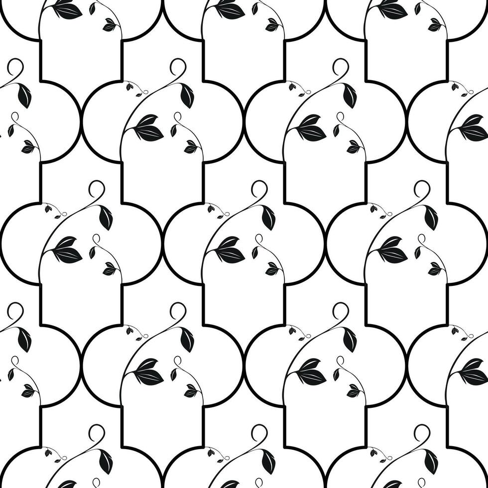 A seamless pattern featuring stylized leaves and vines against a white background, arranged in eastern pattern with circular shapes. Pro Vector
