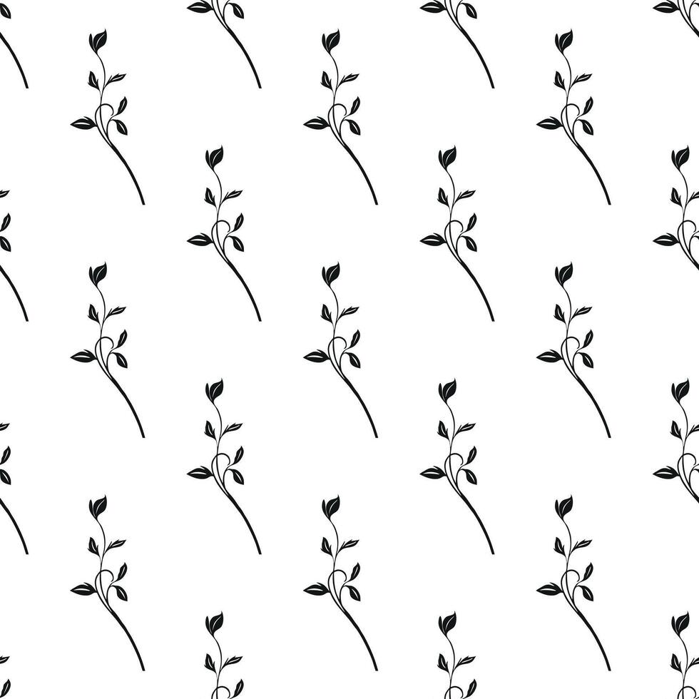 A seamless pattern featuring delicate black outlines of slender branches with small leaves on a white background. The design is minimalistic and elegant, suitable for various applications. Pro Vector