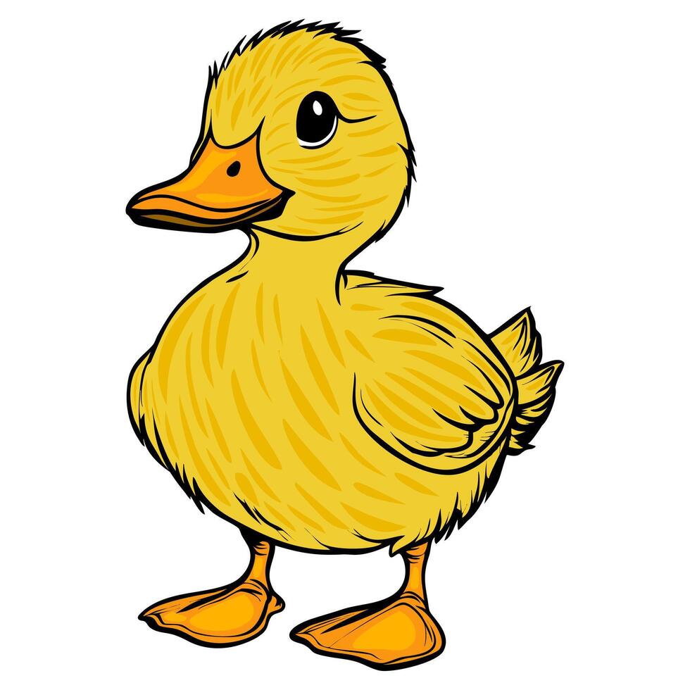 A cute , cartoon-style yellow duckling with a round body, fluffy feathers, and a cheerful expression. The duckling stands upright with its wings slightly raised. Pro Vector
