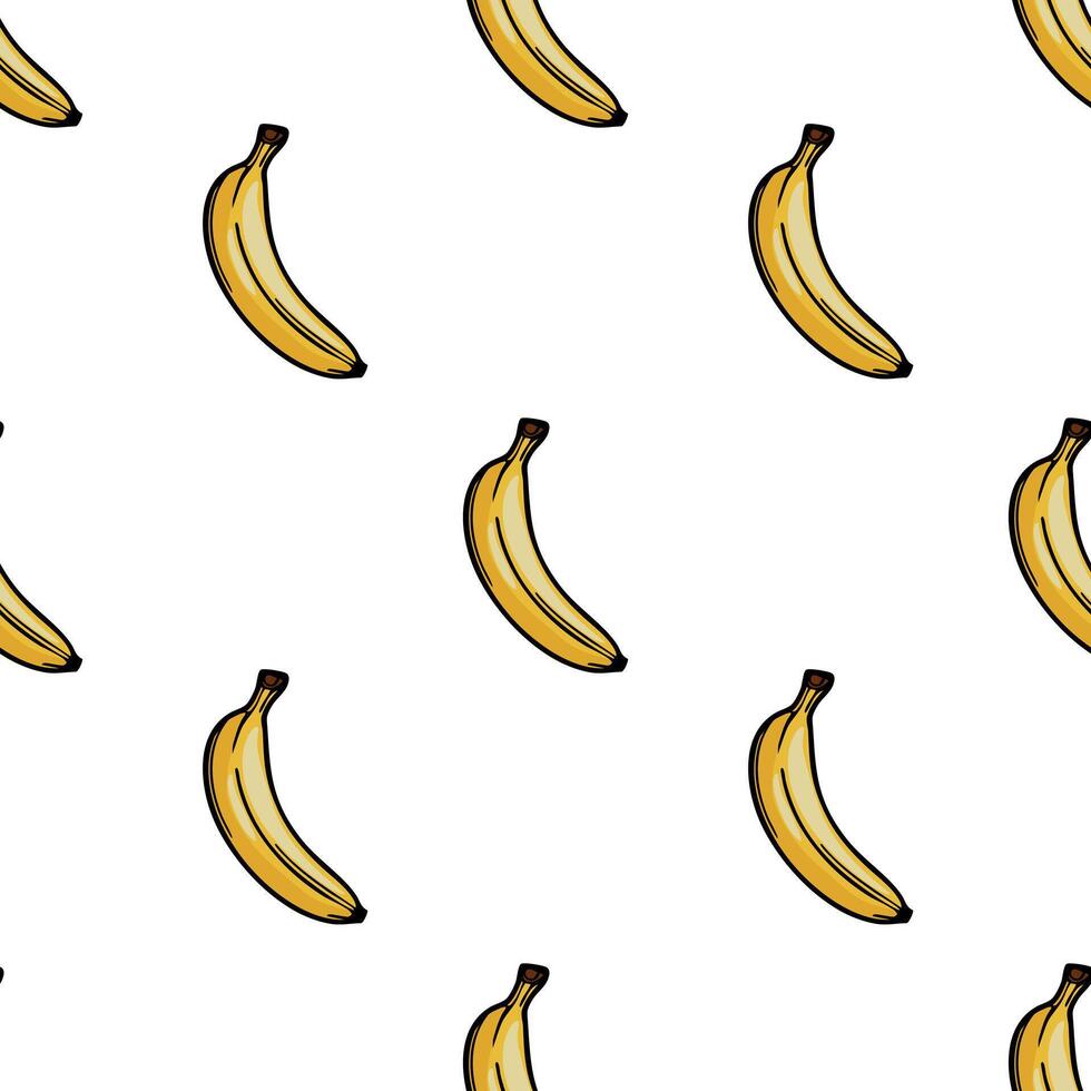 A seamless pattern featuring multiple yellow bananas on a white background. The bananas are illustrated in a playful and cartoonish style, evenly spaced throughout the design. Pro Vector