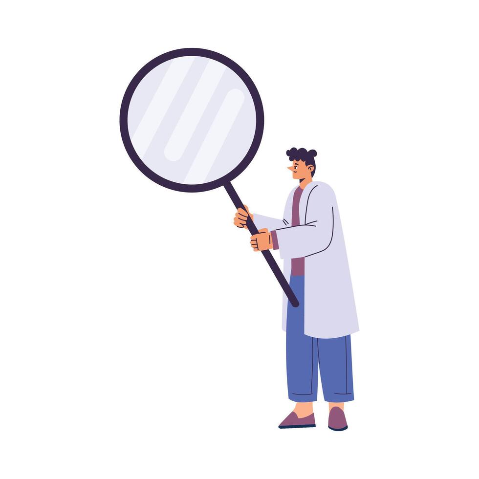 Man Scientist Character in Coat Standing with Magnifier Illustration Pro Vector