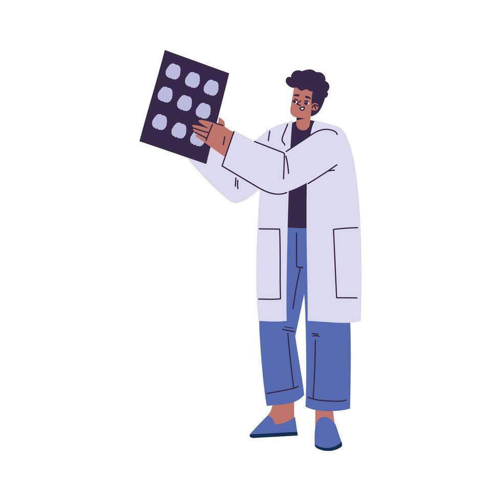 Man Scientist Character in Coat Standing with Brain Screen Illustration Pro Vector