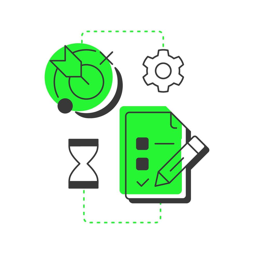 Workload modern linear concept icon. Task management. Document verification, paperwork. Business goal. Flat outline elements connected with dotted lines. Creative visual. Easy to edit Pro Vector