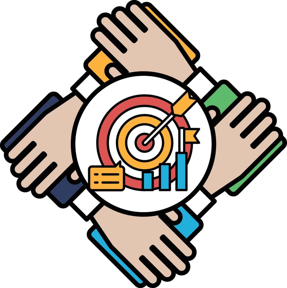 A group of people holding hands around a target with a red arrow pointing to it Pro Vector