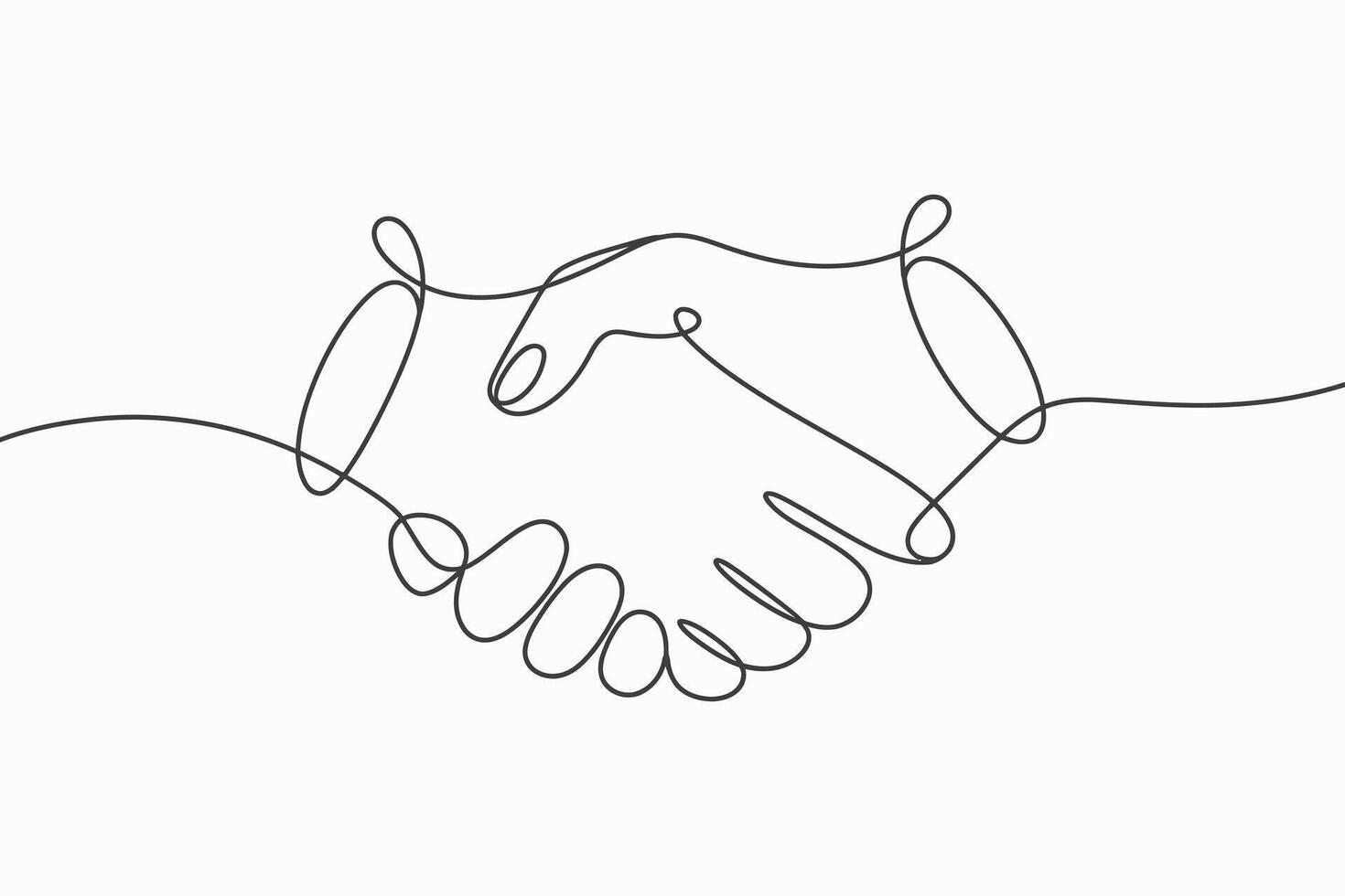 Continuous line drawing of two hands shaking isolated on white background Pro Vector