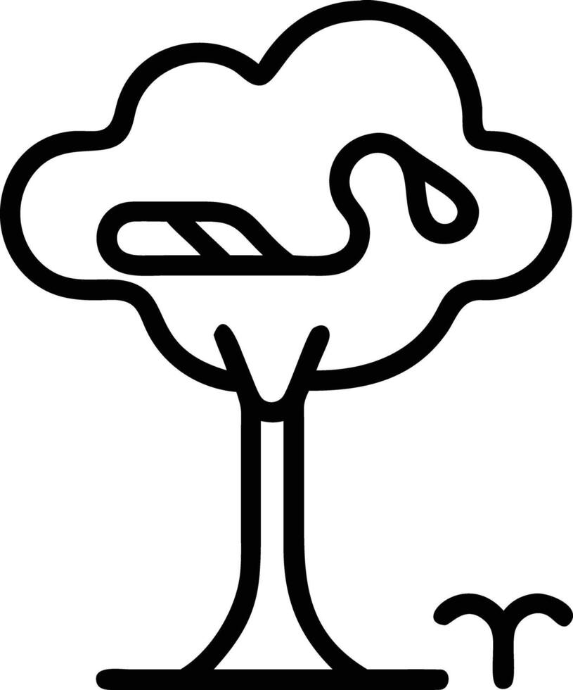 Simple tree icon with nest and tiny bush line art design Pro Vector