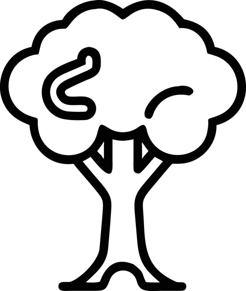 Tree trunk illustration in line art style with snake among leaves Pro Vector