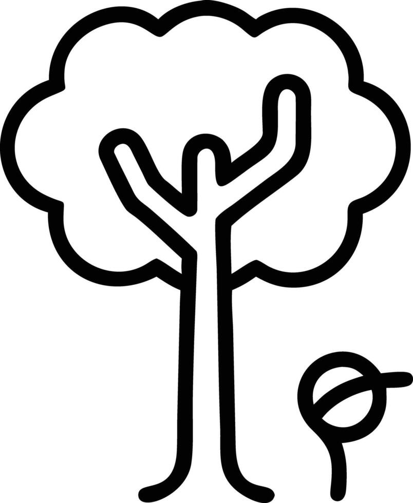 Tree trunk and fruit with leaves in simple line art illustration Pro Vector