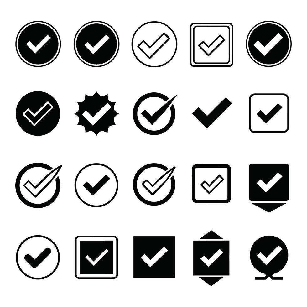 art of a collection of green check marks in circles and squares, symbolizing confirmation and choices vector