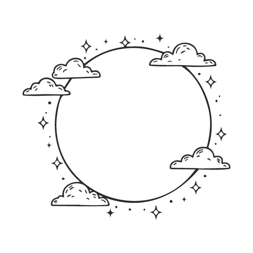 Circular cloud frame with stars Hand drawncelestial design in simple outline style Pro Vector