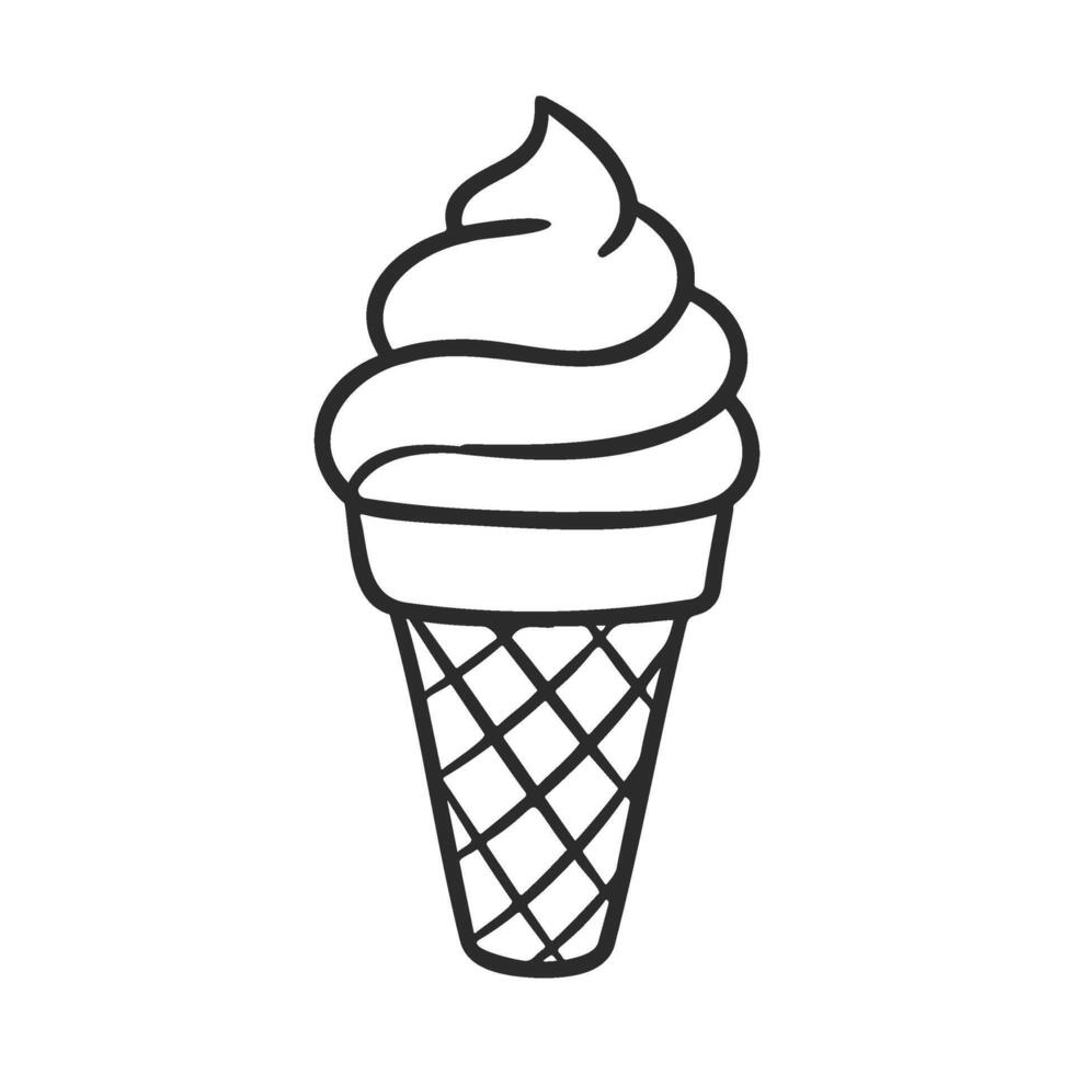 Outline of a classic ice cream cone with waffle pattern Pro Vector